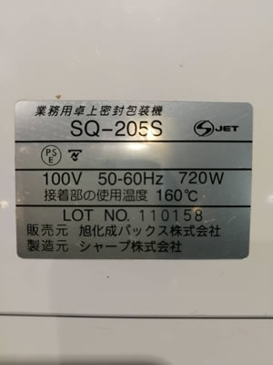 | 中古卓上密封包装機/品番 SQ-205S 問い合わせ番号 Z-0822-8 |