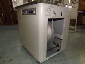 | ■特長 ●さらに使いやすさを重視した安心設計 バンドをガイドに差し込むと”ピッ”という信号音で引締め開始をお知らせします。 また、万が一バンド送りが不安定になったとしても”ピピピピッ”という信号音と同時にバンド供給を停止し、バンド詰まりを防止します。(実用新案) ●洗練された曲面ボディにデザインを一新 従来の梱包機に比べて、全体的に丸みを帯びたデザインにしたことで安全で且つ快適性を実現しました。 ●低騒音でオフィスでも快適 騒音問題に重点を置いた設計により、大幅な騒音の低減を実現。オフィスでも安心してお使いいただけます。 ●安定したバンド引き締め バンドの引き締めは、操作パネルのダイヤルで0~200mmまでの無段階調整が可能です。 ●マイクロコンピュータを採用 マイクロコンピュータの採用により、従来より各段に電気制御の信頼性を向上させました。 ●安全のリール内蔵式 機械内蔵式のカセットリールを採用し、安全性と使い易さを両立させました。 ●バンド幅も、機種も荷姿に合わせて選択が自由 バンド幅は5mmから15.5mmまで部品を換えずに使用可能。また、PPバンド・ソフトバンド・発泡バンドなど、各種バンドがご使用いただけます。 ●100V家庭用電源で即稼動 家庭電源の単相100Vで使用可能。一般のオフィスやお店でも、その日からお使いいただけます。 ■仕様