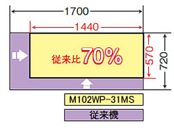 | ■特長 ●ケースを組み立てた後、底フラップをホルダーに引っかけることで両手を使って箱詰め作業が出来ます。(M102WP-31S/M102WP-31MS) ●ケースサイズ調整は幅、高さともハンドルを操作するだけ。しかも、設置場所に合わせて左右の操作勝手の変更も可能です。 ●サイドベルト方式ケースも安定配送を実現。 ●メーカー独自のスライド式ベルトテンション調整でサイドベルトの交換も簡単です。 ●テープ交換も独自のユニットでラクに行えます。 ●コストパフォーマンスの良い優れモノです。 ●同サイズのケースの連続封緘に適した封緘機です。お求めやすい価格で梱包貼り作業が省力化出来ます。 ●作業に便利な搬入テーブルと搬入ローラを標準装備(M102WP-31S/M102WP-31MS) ●M102WP-31MSの場合、設置面積従来比70%(メーカー比) ![]() ■流れ ![]() ![]() ■タイプ