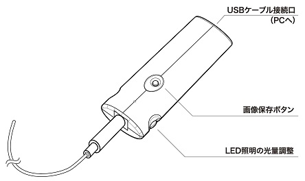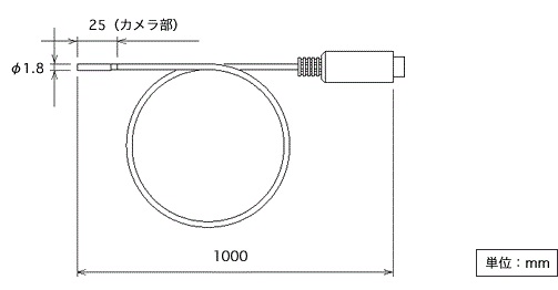 ■特徴 ●内視鏡直径1.8mm ●広角レンズを搭載、わずかな隙間から内部を広範囲に観察可能 ●カラーCMOSイメージングセンサ16万画素 ●高輝度白色LEDを使用、マニュアルで調光可能 ●カメラチューブ長さ1m(2mまで延長可) ●画像表示はUSBインターフェースを経由しPCに出力可能 ■外寸図 ![]() ![]() ■仕様