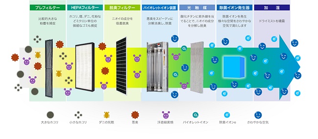 インフルエンザやノロ対策などにクリーンで快適な空間を実現する次世代型空気清浄機です。 | 除菌消臭機能付空気清浄機 品番 M1381Z-450HS-F3J 廃番 |