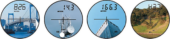 目標までの「直線・垂直・水平距離」「傾斜角度」 目標物の「高さ」、斜面の「長さ」「奥行き」「角度」「高低差」を瞬時に数値化。 |