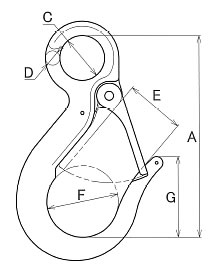 アイボルトなど小さな穴に挿入し、吊り上げるために開発されたフックです。 | アイボルト用吊り具フック 品番 M1434F-1011182T 価格は下記をご覧下さい |