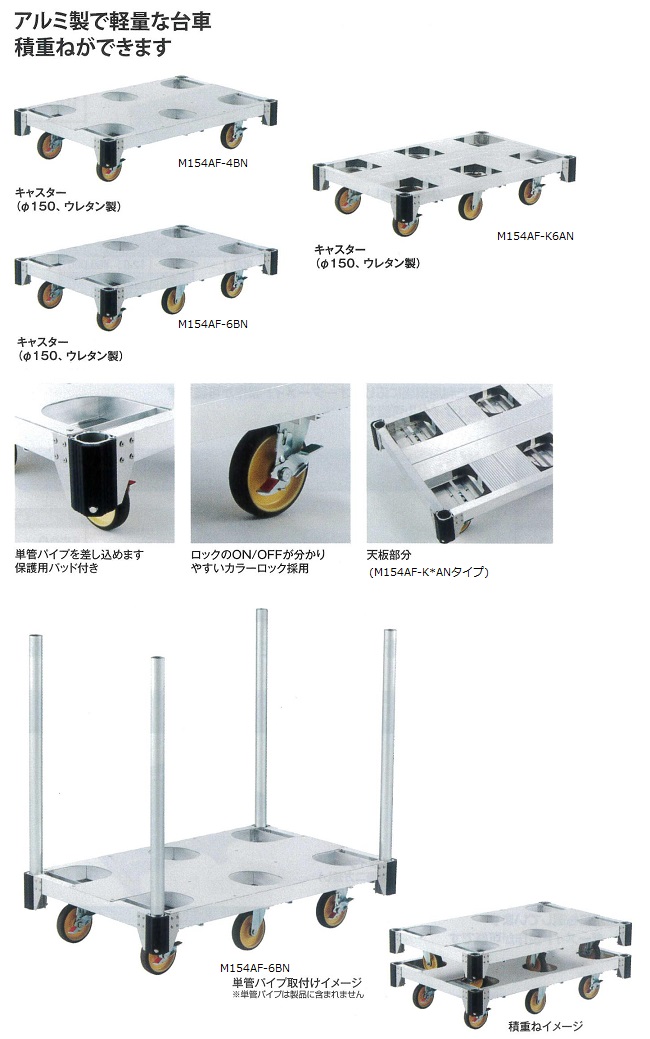 | アルミ平台車 品番 M154AF-4BN | 【詳細表示】 | ||||||||||||||||||||||||||||||||||||
