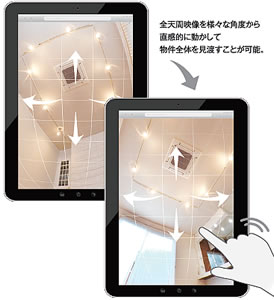 物件をまるごと記録し魅力的にアピール。 ワイドで魅力的な全天写真・超広角写真を、簡単&手軽に撮影。 効果的な物件紹介、業績アップに大きく貢献します。 外観・内観ともにワイドに撮影。 多彩なアングルにも対応 |