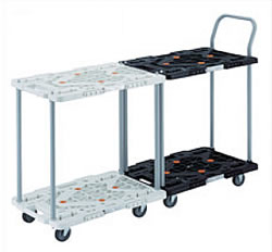 荷台は堅牢なリブ構造です。 薬品や溶剤にも侵されにくく耐久性に優れています。 台上に滑り止め用ゴムが4ヵ所ついています。 組立目安:2人30分 |