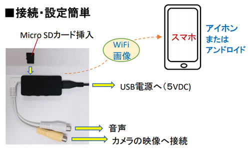 カメラの映像をスマホで見る 小型で形態に便利 Wifi信号で映像を送る マイクロSDカード&スマホに録画 |