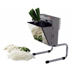 | ■特長 ●関東ネギ・キュウリ・ゴボウなど やわらかく腰の強い食材に対応。 ●材料を投入口に入れるだけ。鍋焼きうどん用のネギが簡単に。 ●別売りの投入口を取り替えるだけで、切り口の長さは最大190mmまで可能。 ●ネギの薄くて長い斜め切りは「ネギらーめん」に、キュウリの長い斜め切りはサンドイッチなどの調理パンに最適です。 ■仕様