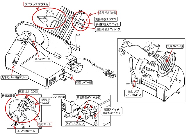 丸刃カバーは後部の締付ボルトを外し水洗いします。