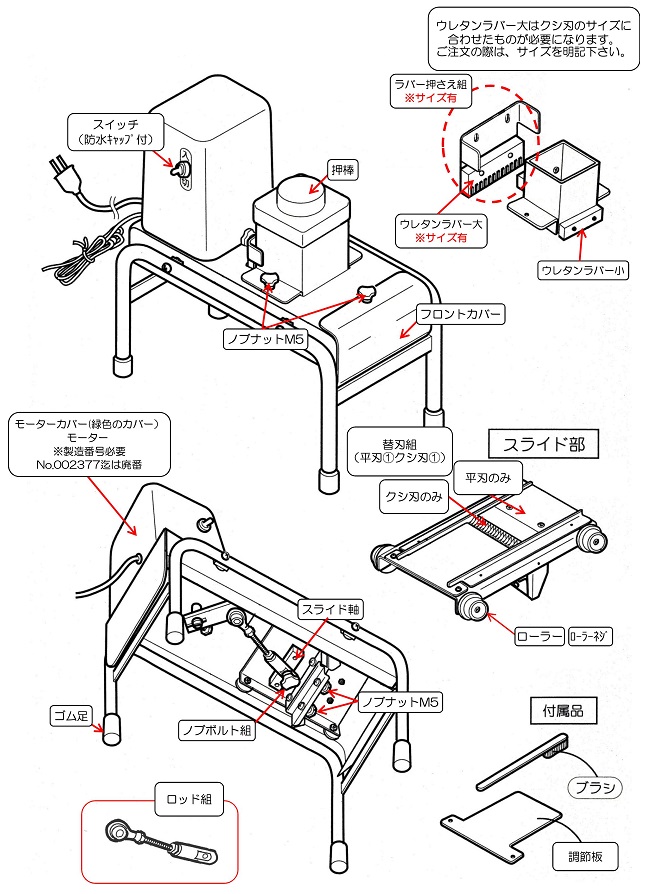 コンパクトで使いやすい高性能キンピラ切り機。 スーパー、惣菜店、弁当屋さんに最適です。ネギラーメン用のネギ切りもOK。 |