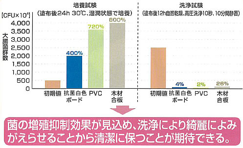 壁材・天井材・掲示板など様々な用途で利用可能。 表面がチタン配合で菌の増殖抑制効果が見込める再生プラスチックボード。 |