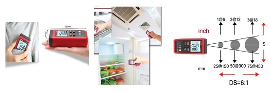 ■特長 1)シングルポイントレーザターゲット 2)白いバックライト表示 3)最大/最小/平均測定 4)ロック測定 5)データ保持機能 6)自動電源オフー 7)低電力インジケータ 8)℃/℉選択 9)電源オフ時のデータ保存機能 ![]() ■レーザー安全度 DA と EN60825-1:2014 CLASS Ⅱ <1mW λ=630nm~670nm ■品質認証 CE:IEC 61000-4-2: 2008; IEC 61000-4-3: 2006+A1: 2007+A2: 2010 EMC:EN 61326-1:2013, EN 61326-2-2: 2013 ■仕様