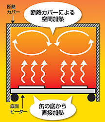 | ■特長 ●缶を置くだけで簡単に加熱・保温が出来ます。 ●4缶まとめて加熱・保温できます。 ●粘性液体の高粘度防止、液温保持に効果的です。 ●安全設計(温度調節器・温度ヒューズ) ■ダブルの効果で現場のお悩み解消 ![]() ■底面ヒーター側面にある温度調節器を引き出します。 ![]() ■誰でも使える 簡単4STEP