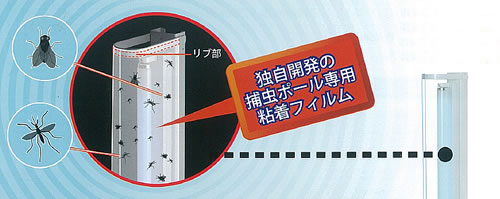 防虫対策にお困りの皆様へ 昆虫の走行性+螺旋飛行習性を利用した高率捕虫器です。 |