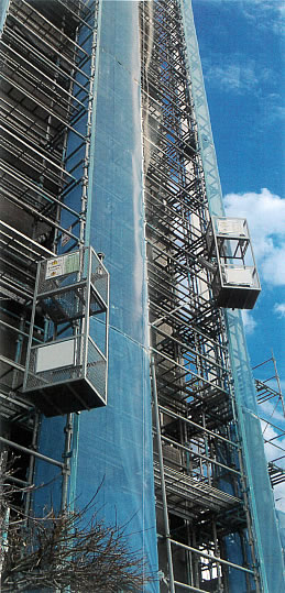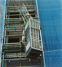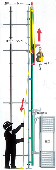 足場用組立リフト 枠組足場やクサビ式足場に使用可能です。 ※ホイストは付属していません |