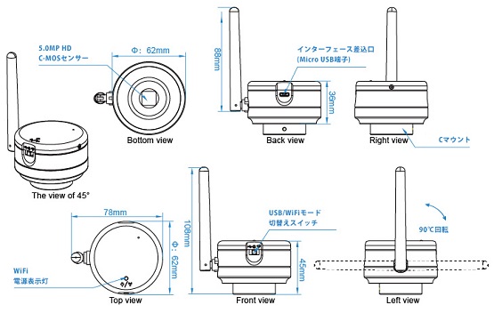 1/2.5inch(5.70mm(H)x4.28mm(V)、7.13mm(D) |