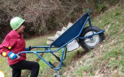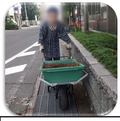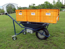 | ■でこぼこ、坂道で威力発揮 簡単操作だから高齢者でも安心 ![]() ■積載アタッチメント(オプション)で、カゴを3個ラクラク運搬 ![]() ■各部名称
