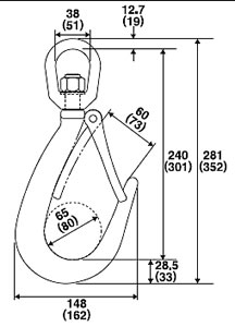 ●スイベル機能によってチェーン・ワイヤーロープのねじれを防ぎ吊り上げ物の回転を抑えます。 ●アイフックやクレビススリングフックより口の開きが大きいので径の太いもの等を掛けるのに便利です。 ●鍛造製で丈夫なラッチ付きです。 |