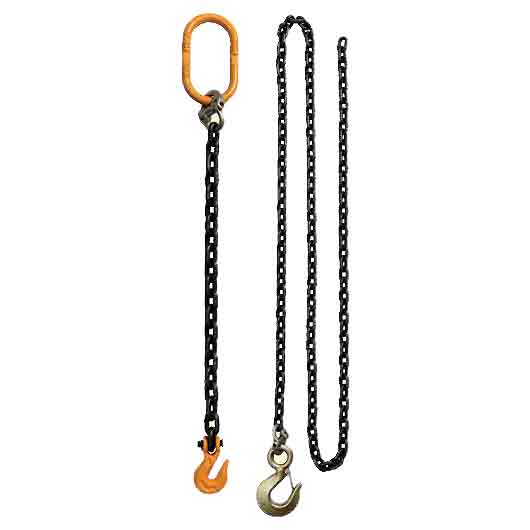 ※使用上の注意 ●絞り吊りの為、使用荷重の80%以下でご使用下さい。 ●極端なシャープエッジ(鋭角)物には必ず角あてをご使用下さい。 ●チエーンをねじつたまま荷揚げ作業をしないで下さい。チエーン強度が低下します。 ●使用前点検を必ず行いチェーンにキズ変形等の異常が有れば必要に応じて交換、廃棄して下さい。 |