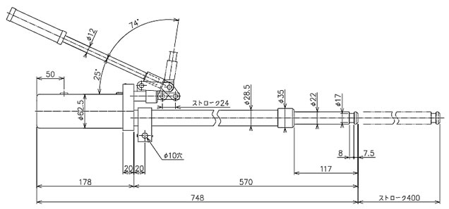 ストローク 400 mm、最大能力 0.7 ton のロングジャッキです。 機械や道具に組み込んで使用します。 |