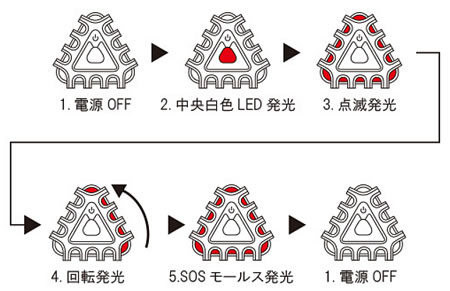 | ■特長 非常信号灯や夜間・暗所作業、緊急時などの警告灯に 防水IPX4相当 マグネット・フック標準装備 SOSモースル発光有 発光パターン4通 ![]() ■発光パターン ※電源ボタンを押す度に発光パターンが順次変わります。 記載した仕様および外観は、製品改良等により予告なしに変更することがあります。 ![]() ■使用例 ![]() ■仕様