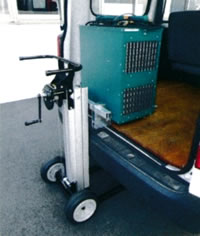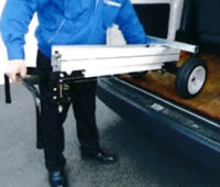 台車に代わる手動リフト 重量物の荷卸しや運搬に 悪路に強い大型ホイール採用 |