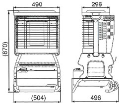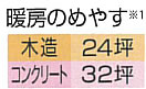 ※カタログ上の数値は測定値であり、保証値ではありません。 ※1:暖房のめやすは、設定温度20℃で温暖値での算出です。数値は断熱材等の条件によって変化します。 (熱出力を基準とした目安値です。十分な換気条件のもとご使用下さい。 ■仕様