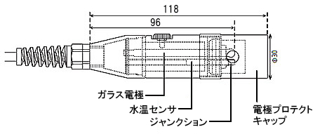 ●耐衝撃性能を強化 本体には「ラバープロテクター」を標準装備しており、万が一測定中や移動中に落下してもラバー素材が衝撃吸収し、破損しにくい構造です。本体は落下耐久5m。(メーカー実験データより) また、電極内部に耐衝撃シリコンゴム採用し、落下耐久2mの高さからの落下でも壊れない強度を備えています。(メーカー実験データより) ![]() ●ケ-ブルの屈曲に強い 水流が激しい測定水でも、ケーブルグランドにより屈曲による断線が起こりにくく、丈夫な構造です。 安心して投込測定にご使用いただけます。 ![]() ●現場に合わせた効率的なpH測定スタイル