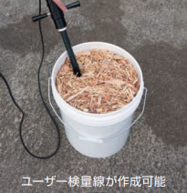 | ■特長 ●ハンディタイプ 現場に持ち込み、リアルタイムで水分測定ができます。 ●迅速な測定 センサーを差し込んだままキーを押すと、数秒で結果が表示されます。 ●表示は湿量基準(wet base) 木材の水分は乾量基準( Dry base)で表されることが多いのですが、 本器では湿量基準(Wet base)で表示されます。 ●上限値アラーム機能 効率の良い水分管理のために、水分の上限値アラームを設定できます。 測定値が設定値を超えると、ブザーでお知らせします。 ![]() ●「切削チップ」「破砕チップ」2種類の検量線を用意 この他に、ユーザー独自の検量線が最大13種類 まで記憶できます。 ![]() ■仕様