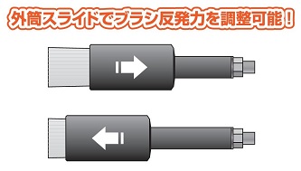 スライド式外筒を採用、ブラシ反発力の調整を可能に。