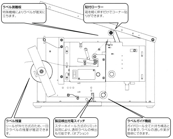 ■製品概要![]() ■特長 ●ラベルのコーナー貼り作業が、手軽に、速く、正確に行えます。 ●軽量コンパクトタイプで持ち運びも容易です。 ●多品種・小ロットの箱のコーナー貼りに最適です。 ※事前に実際にご使用されるラベルサンプルとワークでの貼り付けテストが必要です。 ■仕様
