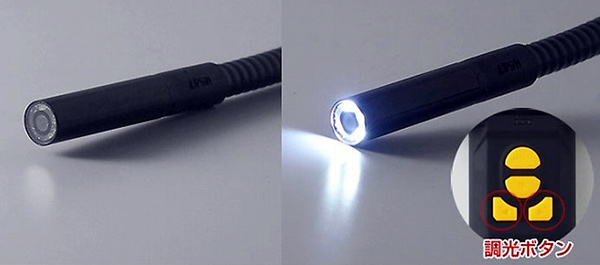 【オプション先端可動リジットケーブル M926R-RIGIDS】 ●高いところや壁の内部の点検に ●ケーブル部は硬質で曲がらない仕様 ●先端が左右2方向に可動(最大300°可動) ●先端には白色LED4灯、明るさ調整可能 ![]()
