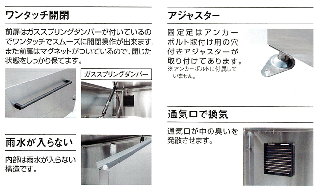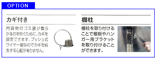 | ステンレスと木目調のデザインが都市景観にマッチします。 集積ステーションやスタイリッシュな物置としてご利用いただけます。 ![]() ■特長 ![]() ![]() ■寸法図 ![]() ■仕様