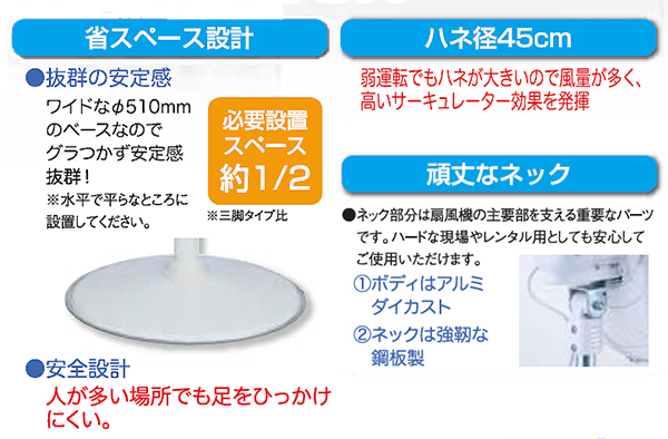 サーキュレーター機能付き大型扇 冷暖房の空気を攪拌する45cmの大型で強力な扇風機です |