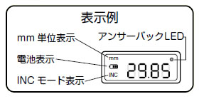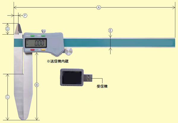 | ■特長 ●大口径の外径測定に最適です。 ●データ送信距離は見通しで約5m。 ●アンサーバック方式採用。 ●送信機はデジタル表示部に内蔵されております。 ●受信機はノギス本体に1個付属します。 ![]() ■表示例 ![]() ■寸法図 ![]()