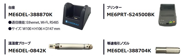| ■主な機能 ●大きくて使いやすいタッチパネル式4.3インチカラーディスプレイ。 ●付属ソフトウェアでPCからリモート操作、経時変化を簡単にモニタリング。 付属のソフトウェアで、測定の開始と停止を制御、粒径別の経時変化をモニタリングできます。別売の台座(ME6DEL-388870K)は通信機能(Wi-Fi他)を備えているため、Wi-Fi機能付きPCなら無線接続が可能。 ![]() ●粒径区分の異なる2つのモデルをご用意(3粒径・6粒径)。 ●日本語、英語、中国語、スペイン語の4言語に対応。 ●別売の温湿度プローブを接続可能(ME6PTC-49910Kのみ)。 ●USB(メモリ/ケーブル) で簡単にデータ取り出しが可能。 ●ISO21501-4およびJIS B9921に準拠。 ■使用用途 ●クリーンルームの清浄度管理 クリーンルームやクリーンベンチで要求される空気清浄度の維持管理に使用することができます。 ●製品製造工程の環境管理 食品、医薬品、半導体など各種製品の製造工程における環境管理に用いることができます。 ●医療現場の清浄度管理 病院空調設備の設計・管理指針、HEAS-02-2013「清浄度クラスによるゾーニング」などで部屋の用途に応じた清浄度管理のガイドラインが設けられており、その管理に使用できます。 ●フィルター試験 JIS Z 8122 において「定格風量で粒径が0.3 µmの粒子に対して99.97%以上の粒子捕集率をもち、かつ初期圧力損失が245Pa以下の性能を持つエアフィルタ」と定められているHEPAフィルタのリーク試験等に対応しています。 ■仕様 ![]() (単位:mm)
