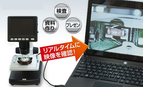 | ■特長 パソコンを持ち込めない現場にも。 モニター一体型&充電池採用。 単体で確認・保存が可能な高い機動力が特徴です。 ![]() ■用途 ●機械部品、金属、繊維、紙、樹脂、生物組織、クラック、表面劣化、腐食の検査などに。 画像・動画の保存ができ、レポート、資料つくりに最適です。 ●複数人でリアルタイムに検査結果を確認できるため、会議やプレゼンに便利。 ![]() ■仕様