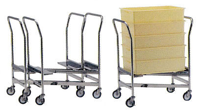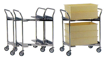 両ハンドル式コンテナ台車 1段タイプと2段タイプがあります。 均等積載荷重:200kg |