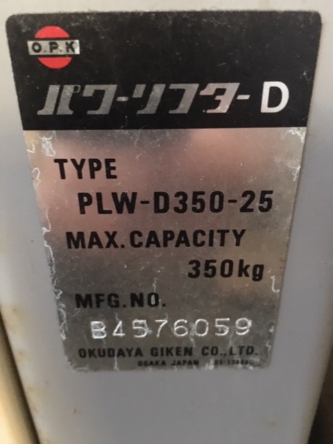 中古バッテリー式パワーリフター 品番 PLW-D350-25 問合せ番号 Z-0831-3 |