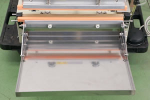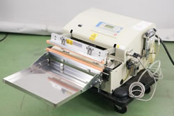 | ■標準装備 ●理想的な加熱温度を設定・維持することができる加熱温度コントロール機構は下記の用途などに活躍します。 ・加熱温度の変化によるシールミスが許されない場合 ・長時間の連続使用、量産される場合 ・シール精度・強度が常に一定であることが要求される場合 ●薄型温度センサー(熱電対)をヒーターに接触させ、ヒーター温度をダイレクトに検出し制御します。 ●作業場環境(気温)の変化や長時間の使用による機械温度の上昇などにより設定したシール条件が変化することがありません。 ●「理想的な加熱温度」=「フィルムが溶ける温度」に加熱温度を設定することができますので、シール強度を向上させることができます。また、シール加熱・冷却に無駄がないので省エネルギー・高作業効率であるとともにヒーター、テフロンなどの部品寿命を長くします。 ■高い真空度 ●内蔵の真空ポンプは排気速度80㍑/分 到達真空度-96Kpaの高い真空度を得られます。 注)排気速度・到達真空度は、機械に組み込んでいない状態で計測した数値です。 到達真空度は0torrを-101.3paとしています。 ●コンパクトサイズ 排気エアにより駆動シリンダーを作動させ、吸気口から真空排気を行うコンプレッサーポンプを使用して、本体ボディのコンパクト化を図りました。また、ドライポンプを搭載していますのでクリーンな排気で作業場環境を悪化させません。 ■安全装備 シール加熱時に設定時間以上の通電があると自動的にOFFになる加熱防止回路付漏電ブレーカーを標準装備しています。 ■冷却時間設定に関する注意 加熱温度設定範囲60~250℃冷却温度設定範囲40℃~加熱温度設定値の範囲で設定可能ですが、冷却時間は必ず加熱温度より低い数値で設定して下さい。 加熱温度に近すぎる数値に設定すると冷却されず、テフロンなどの部品寿命が短くなります。 ■外形寸法図 ![]() ![]() ■仕様