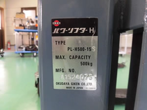 中古をくだ屋技研手動式パワーリフター 品番 PL-H500-15S 問合せ番号 Z-0834-6 |