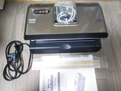 | ■特長 ●ワンプッシュで、脱気からシールまで全自動 基本操作はスタートとセレクトボタンの2つのみ。 全自動と手動の作業の切り替えが可能になり、お好みでご使用になれます。 ![]() ●水分の多い食材も脱気シール可能 集水カップを内蔵しているので、空気と一緒に液体が内部に入っても、慌てる事なく安心して使用できます。 ![]() ●全世界対応の内蔵型アダプタ採用(100~240V) 先端プラグの形状を変更するだけで、世界中の様々な地域、場所でご使用になれます。 ●稼働状況が一目瞭然のLEDランプ表示機能 選択している機能により点灯方式が変わるので、一目で稼働状況が分かります。 ![]() ●強力な吸引力を実現 脱気性能-80kPaを実現し、従来品より130%の性能アップ。(メーカー比) ●脱着ノズル構造でお掃除も簡単に 吸気部のノズルが簡単に脱着でき、袋の触れる部分のお掃除もラクラク。 安心して清潔にご使用になれます。 ![]() ●省電力を実現したエコ設計 消費電力200Wは、1時間(100回)使用しても、電気代約4円。(メーカー調べ) ●使用する袋は幅広く対応 間口300mmまでの袋が使用可能。シールタイマーを設定することで、袋の厚みに応じた調整も可能です。 対応する袋は、ナイロンポリ、アルミ蒸着、ラミ袋など様々な材質に対応します。 (使用環境により異なる場合がございます) ![]() ■外寸図 ![]() ■仕様