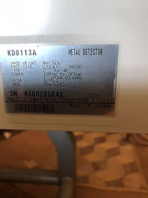 | 中古アンリツ金属探知機/品番 KD8113A 問い合わせ番号 Z-0845-8 |