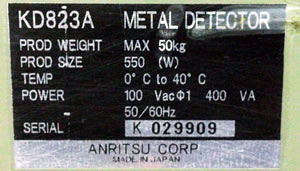 中古アンリツ金属探知機/KD823A/問い合わせ番号 Z-0847-1 幅広構造の普及機で、大袋・大箱商品に適しています。