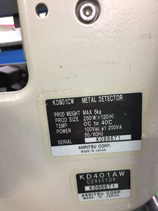 中古アンリツ金属検出機 品番 KD301C 問い合わせ番号 Z-0848-1 |