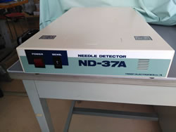 | ■特長 ●検針感度が高い 検出面上11センチの高さで絹針10号を検出。(針寸法33.3L×0.56φmm) ●切り換えスイッチによる6段階の感度調整。 ボタン、ファスナー、ホックなどの金属製附属品の種類、大きさに対して感度を選択し、附属品の影響を調整可能。 ●検出「針」の大小により、警報ブザー音が異なり大小が判別できます。 ●振動につよく動作は安定。 ●作業台に組み込みが可能です。 ■用途 ●婦人服・子供服・紳士服など縫製品の「忘れ針」の検出。 ●アンダーウエアー・パジャマ・ベビーウエアーなどの検針。 ●和服・ボトム製品など「忘れ針」の検針。 ●布地・生地・織物に混入の金属片(鉄製)の検出。 ■仕様