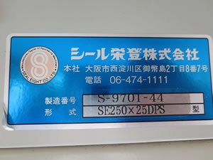 中古シール栄登脱気式エンドレスシーラープリンター付 品番 NSE250×25DPS 問い合わせ番号 Z-0850-2 |