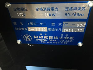 中古協和電機L型シーラー 品番 VT-600 問い合わせ番号 Z-0852-2 |