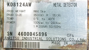 中古アンリツ防水金属探知機 品番 KD8124AW 問い合わせ番号 Z-0859-4 |
