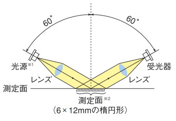 | ■現場での使いやすさを追求した操作性と充実の機能 ●小型、軽量、簡単操作 ![]() 当社従来機 体積比 約30%小型化。 握りやすく、持ち運びやすいデザインに。 1ボタン1機能で直感的に操作でき、誰でも簡単に現場で光沢を数値管理できます。 ●安心な防塵・防滴構造 ![]() 防塵・防滴仕様 IP42※対応。 建設現場、太陽電池パネル、船舶、列車、バスなど屋外での光沢測定に活用いただけます。 石材など水を使う現場でも使用可能。 ※電池蓋やUSBカバーが閉まった状態でIP42相当の防塵・防滴性を有します。 これは完全防塵・完全防水を保証するものではありません。 また、すべての使用環境で動作および性能を保証するものではありません。 正確な値を得るためには、測定箇所の水滴等を拭き取る必要があります。 ●わかりやすい大画面表示 ![]() ひと目でわかる大きく見やすい表示。 測定値を保持するHOLD機能や、測定中の最大値を表示するMAXモードもあります。 ●本体に測定値や平均値を記録 ![]() ワンタッチで本体に測定値を記録。 サイドボタンで、片手でも簡単に操作できます。 平均値の計算や記録も可能です。 ●容易なデータ出力 本体に記録したデータは、専用ソフト不要でUSBケーブル経由でPCに出力できます。 フィールド測定データの記録や、生産検査データの履歴管理などに活用いただけます。 ■こんな現場での光沢測定に… ●洗車・ワックス・塗装 ●ビル清掃メンテナンス ●太陽電池パネル清掃 ●家具の外観検査 ●建材の外観検査 ●洗浄性能確認 ●石材研磨の仕上げ検査 ■寸法図 ![]() ■光沢度の測定基準 ![]() JIS8741では、鏡面光沢度の基準は次の ように定義されています。 ”屈折率が可視波長範囲全域にわたって、一定値1.567であるガラス表面において、規定された入射角θでの鏡面光沢度を基準 とし、この値を100%として表す。” 入射角θ=60°の場合、鏡面反射率は10%と計算できるため、光沢度は100となります。 ※1 光源には近赤外LED(メーカー独自方式)を採用しています。 ※2 光の反射によって光沢度を測定するため、測定箇所は平面である必要があります。 ■仕様